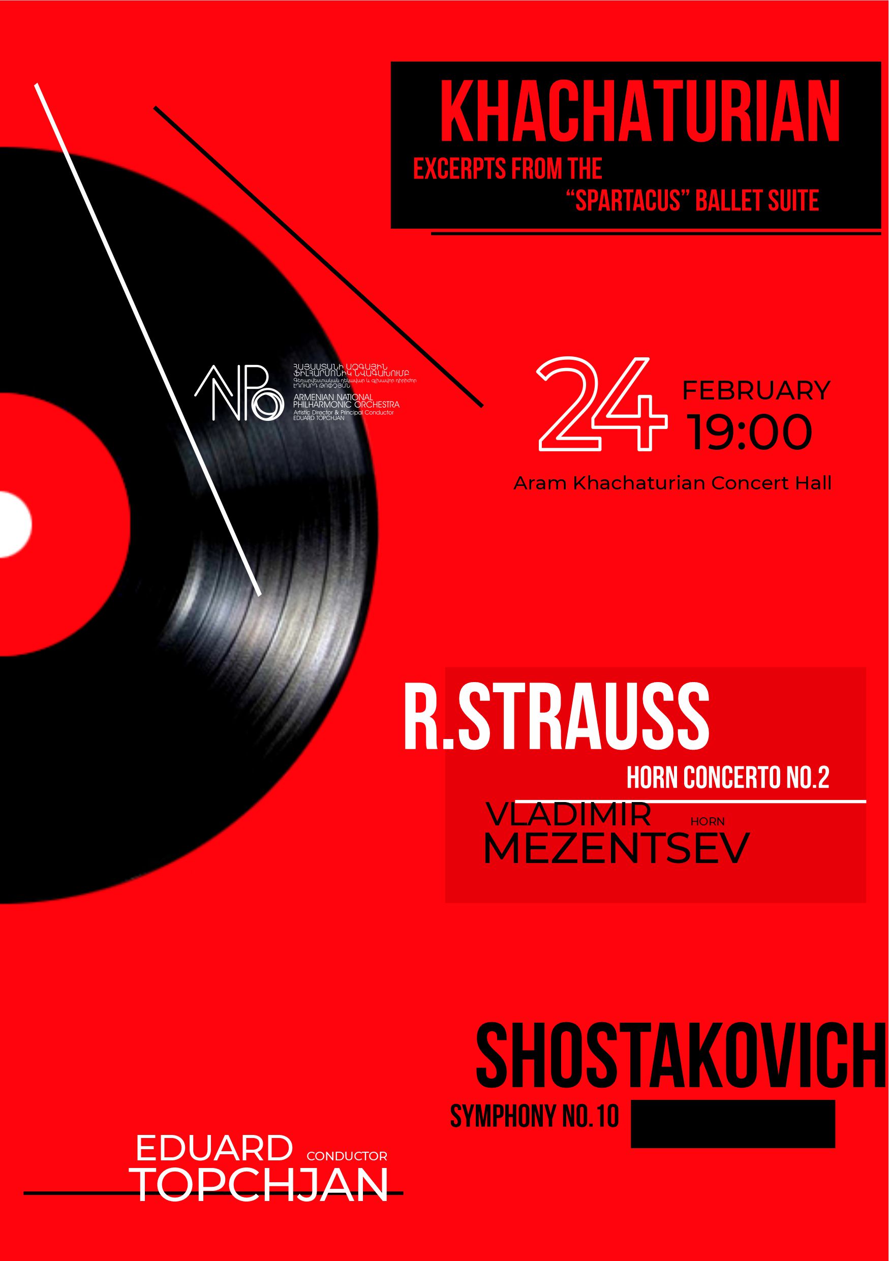 24 February 2023 Khachaturian, Strauss and Shostakovich under baton of Eduard Topchjan "Aram Khachaturian" Concert Hall Book Tickets More Details